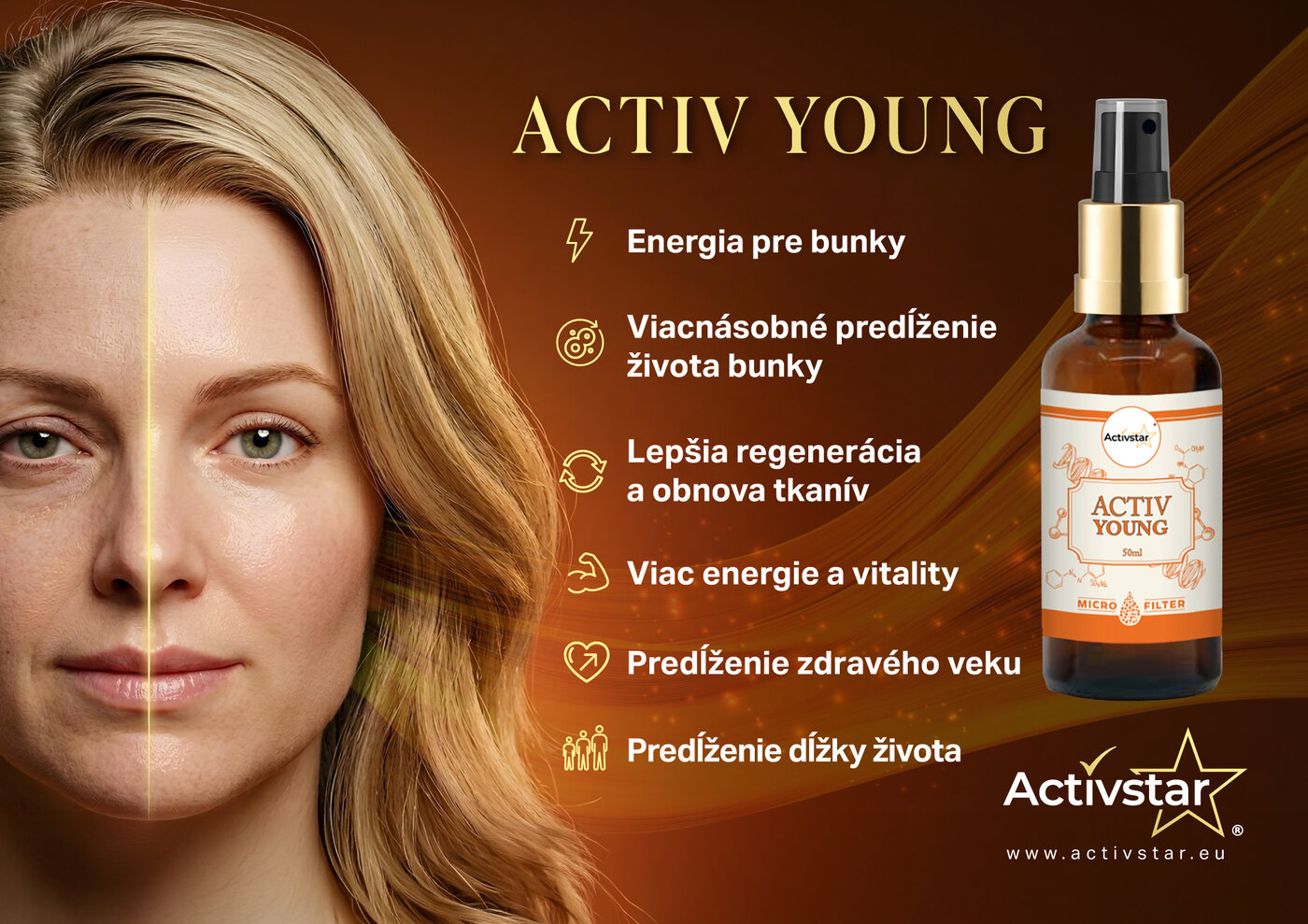 Práve na tomto princípe je postavený Activ Young – moderný regeneračný sprej navrhnutý tak, aby podporoval energiu buniek, regeneráciu organizmu a prirodzenú vitalitu.