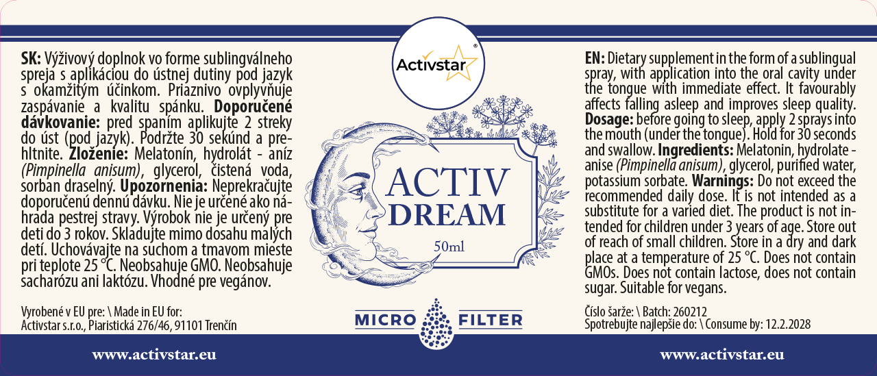 Activstar Activ Dream – sublingválny sprej 50 ml
