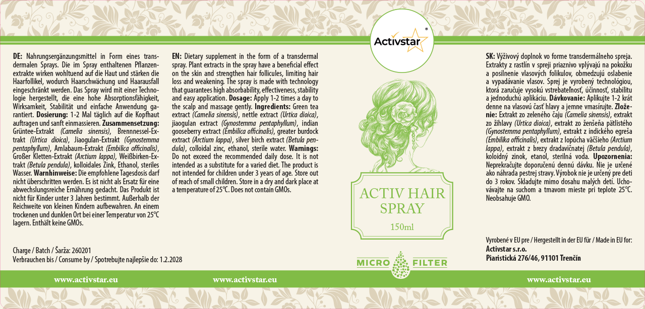 - Kategória: Transdermálne spreje / Produkty / Pre ženy / Vypadávanie vlasov / Spreje / Kozmetika / Pre mužov
