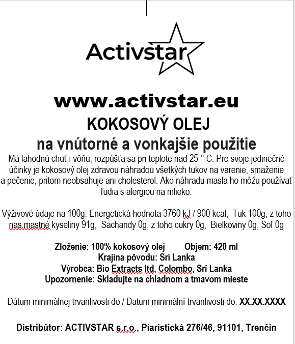 Prečo si vybrať kokosový olej Activstar?