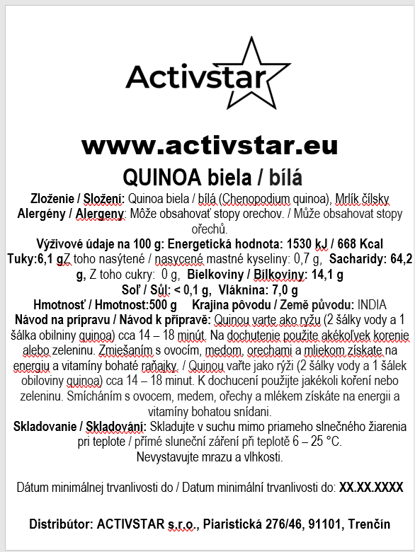 Kvalitná biela quinoa (Chenopodium quinoa) je prirodzene bezlepková pseudoobilnina s vysokým obsahom bielkovín a vyváženým nutričným profilom. Patrí medzi moderné superpotraviny a je ideálnou súčasťou zdravého životného štýlu.